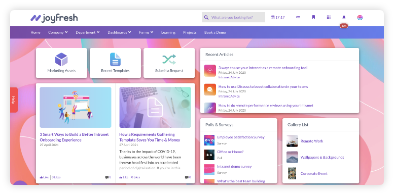 Any good intranet should include personalisation features, such as the ability to target specific information to different teams. Claromentis, for example, uses content targeting technology that pushes company news, announcements, and department-specific data to the relevant staff. This ensures that users aren’t bombarded with information that’s not related to their role or needs. You wouldn’t, for instance, want staff based in your UK office to get an update that’s meant for your US team.