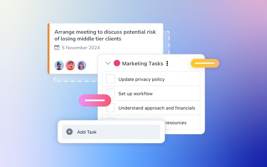 Integrating your task management system with centralised document storage and dedicated chat channels allows team members access to the knowledge needed to complete tasks without taking up time in meetings. As a result, you can use meeting time to focus on the things that really matter.
