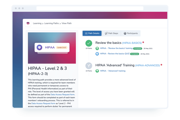 Our learning management software meets SCORM compliance requirements, and easily integrates with our intranet platform. You can create quizzes, courses, and training materials to boost your training programs, and build personalized learning paths that engage teams with custom learning content.