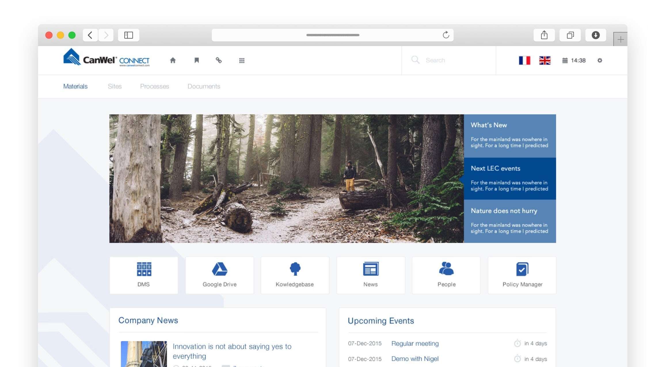 The Claromentis North America Team provided onsite training for CanWel and helped make recommendations regarding system adoption, including fast access to forms, sharing of training materials and corporate updates. As a robust communication tool, CanWel uses Claromentis for knowledge sharing, HR forms, training materials and widespread access to updates across sectors of the organisation.