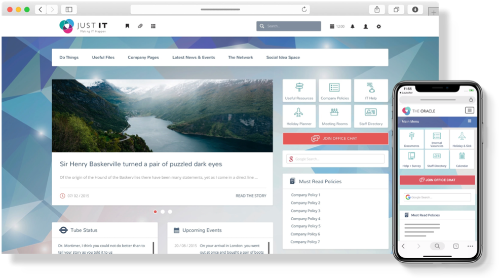 Claromentis intranet allows Just IT to store and distribute important documentation and staff information, whilst also fostering a space for team members to communicate and be part of the wider company culture.