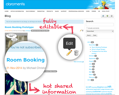 Intranet blogs are often generated by executives or the management team as a means of communicating thoughts and strategies to their staff, they can also be created by individuals with the relevant permission to provide updates on projects and to share important information. The customisable nature of our blogging application fully supports this multi-purposed approach.