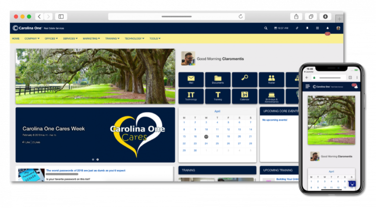 Carolina One, a real‑estate leader with more than 900 agents, needed to replace its 20‑year‑old intranet. Claromentis delivered a modern, mobile‑friendly hub where staff can access contacts, documents, calendars and training classes. Integrating calendars, news, documents and e‑learning makes booking training and finding information easy. They praise Claromentis for making it simple to locate people, documents and news.