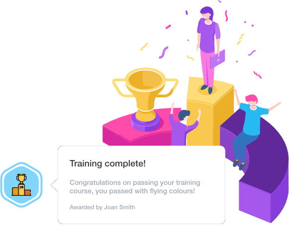 Create and deliver training courses to your staff using our e-learning software. Every employee can follow their own learning path, achieve training certificates, and collaborate with their coworkers within a central nurturing environment. Award intranet badges to staff who meet their training milestones to inspire motivation and engagement.